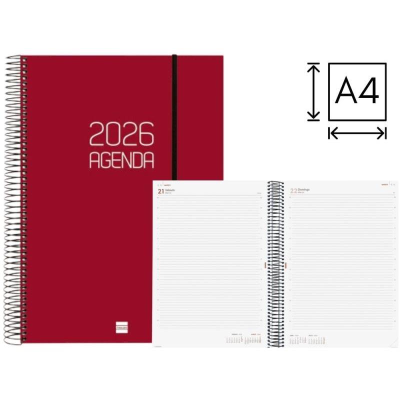 AGENDA FINOCAM ESPIRAL OPAQUE D/P CON GOMA A4 COLOR BURDEOS (742927423)