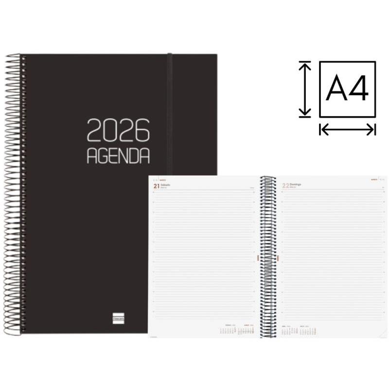 AGENDA FINOCAM OPAQUE ESPIRAL D/P CON GOMA A4 NEGRO (742926026)