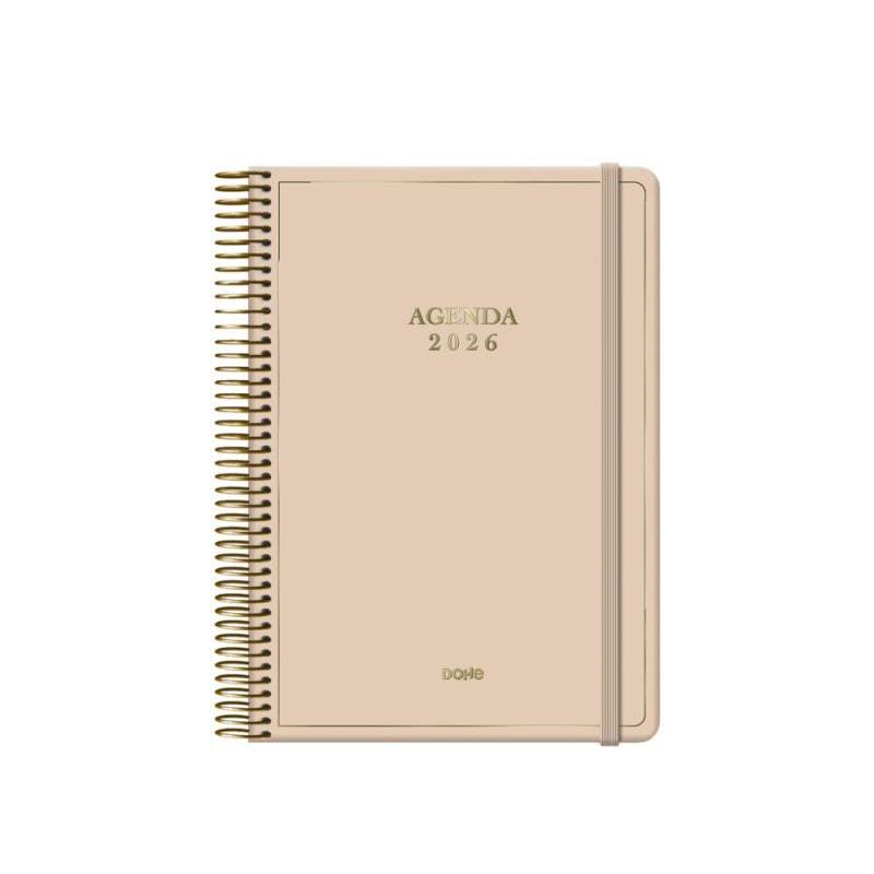 AGENDA ESPIRAL BEIGE DOHE A5  2026 VELVET CARTON IMPRESO PLASTIFICADO  D/P