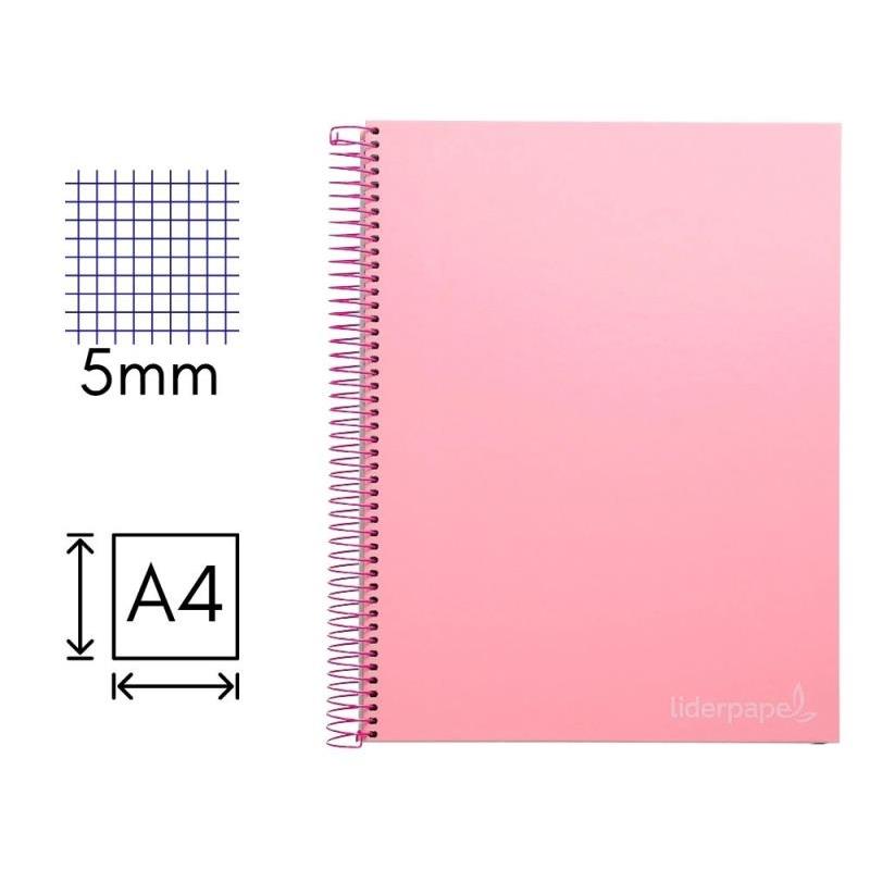 CUADERNO LIDERPAPEL A4 MICRO JOLLY TAPA FORRADA 140 HOJAS 75 GRS. CUADRO 5 MM. 4 TALADROS ROSA (9749