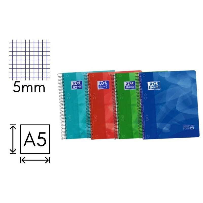 EUROPEANBOOK 4 A5+ Oxford LAGOON: cuaderno microperforado con tapas extraduras con tapas de plástico. 4 colores de banda.