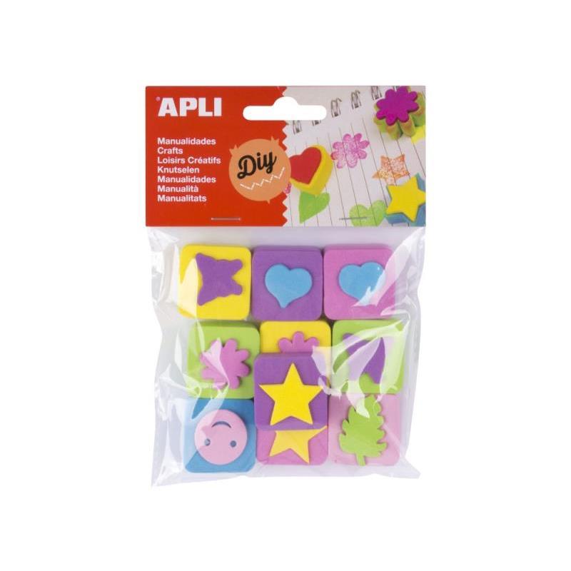 Mini sellos de goma EVA de tamaño 30 mm. Cada pack contiene 10 mini sellos con 6 diseños diferentes: mariposa, corazón, flor, estrella, cara sonriente y hoja. Ideales para que los pequeños se diviertan estampando las diferentes formas o para usar para hacer decoraciones en manualidades y trabajos de scrapbooking.