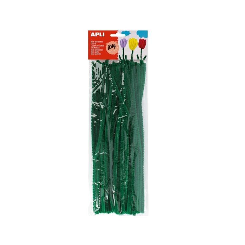 Limpiapipas para manualidades de color verde. Medida: Ø 6 mm x 300 mm. Cada bolsa contiene 50 limpiapipas. Limpiapipas flexibles, suaves, tupidos y de fácil manipulación. Producto básico para escuelas y talleres infantiles, ideales para crear decoraciones, construcción de estructuras, peinados, muñecos, joyas o usar en otras manualidades. Ideales para estimular la imaginación y creatividad de los niños, así como para desarrollar la psicomotricidad fina.