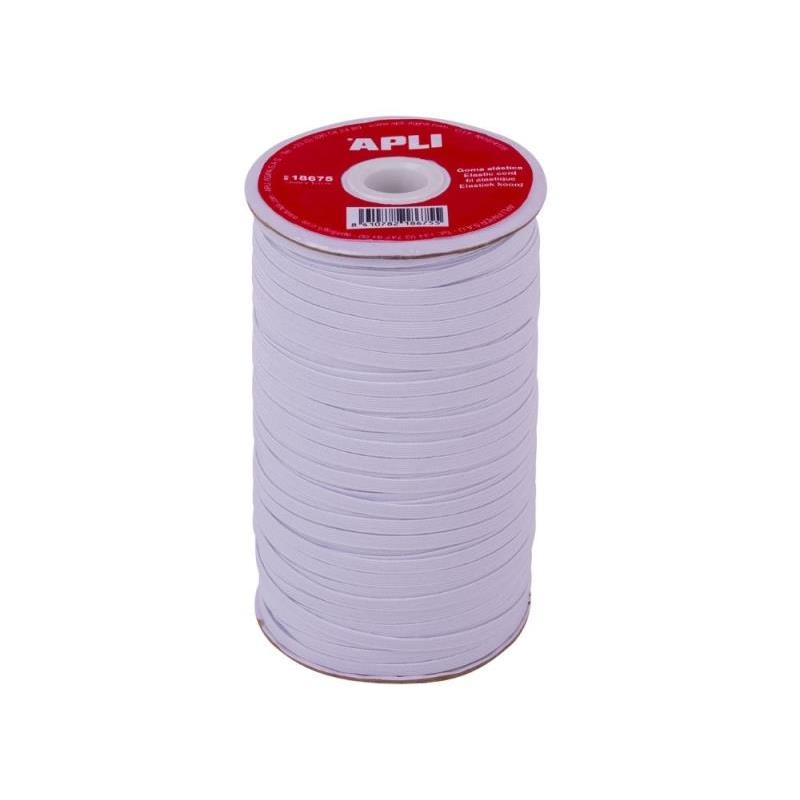 Bobina de cuerda elástica plana tamaño 5 mm x 100 m en color blanco. Producto duradero, flexible y fácil de cortar y atar. Ideal para usar en tus manualidades: máscaras, collares, disfraces, etc