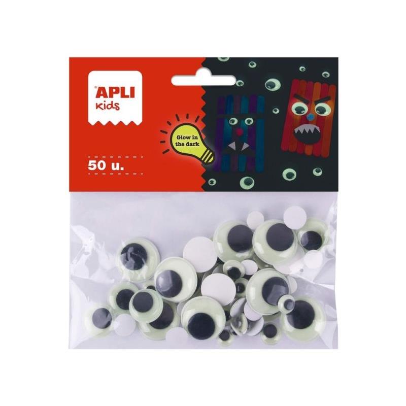OJOS MOVILES REDONDOS ADHESIVOS GLOW IN THE DARK 50 UND. APLI