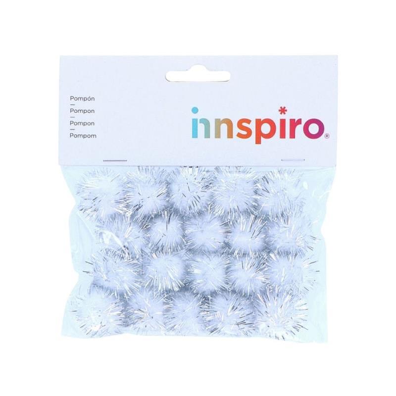 BOLSA DE 20UD. DE POMPONES BRILLANTES BLANCO 25 MM INNSPIRO (99461)