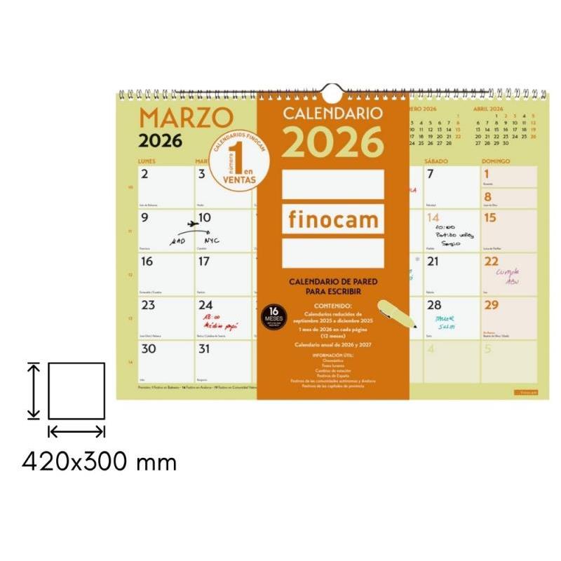 Contenido: La anualidad del calendario incluye la información relativa a: onomástica, festivos nacionales, festivos de las CC. AA., días señalados, fases lunares y cambios de estación. Detrás de la hoja de cada mes se puede consultar el calendario anual. El calendario dispone también de otros contenidos extra: calendarios reducidos de septiembre a diciembre del año anterior, calendario anual del año y del año siguiente, planning anual, listado de festivos de las CC. AA. y de las capitales de provincia e inicios de los años nuevos chino, musulmán, ortodoxo y hebreo. Características destacables: Los artículos Finocam están diseñados para optimizar tu organización personal, haciendo tu vida más práctica, cómoda y a la vez más bella. Duración agenda/calendario: 12 meses (enero-diciembre) + 4 meses reducidos del año anterior Materiales principales: Papel y espiral doble metálica. Gramaje del papel: 120 g/m² Papel: Papel FSC® ecológico libre de cloro elemental y de ácido, fabricado mediante la utilización de energías limpias, con el 100% de celulosa controlada, y bajo los certificados de calidad ISO9001:2015 y medio ambiente ISO14001:2015, cumpliendo así la normativa ISO9706 sobre la permanencia del papel. El Forest Stewardship Council® (FSC®) es una organización no gubernamental, independiente, sin ánimo de lucro, establecida para promover una gestión forestal ambientalmente responsable, socialmente beneficiosa y económicamente viable en los bosques de todo el mundo. Peso: 250 g Medidas exteriores: 420x10x300 mm