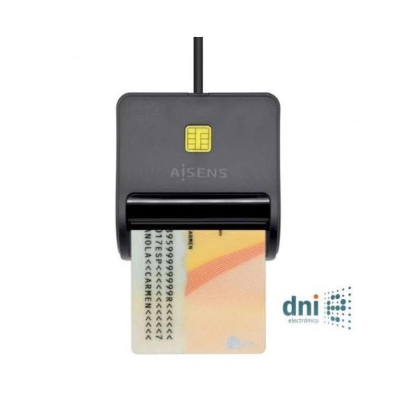 AISENS - LECTOR DNI, NEGRO Ideal para la identificación personal en sitios web y administraciones públicas Compatible con las tarjetas DNI Cumple con las estándares FIPS 201, FIPS TAA e ISO 7816 Clase A, B, C Fácil de usar: solamente hay que enchufar el cable USB en el PC o portátil e instalar el software especifico