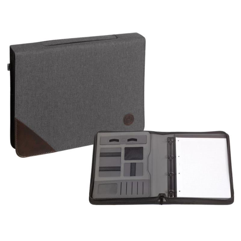 Carpeta congresos venture forrada con material textil con cremallera. Bolsillo acolchado para tablet. Bolsillos elásticos para smartphone o similar.