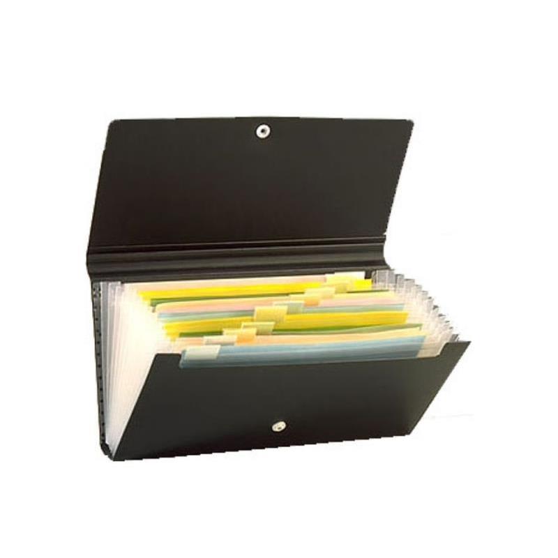 Optimiza tu organización con esta práctica y elegante carpeta clasificadora. Ideal para almacenar y clasificar documentos importantes como cheques, recibos y billetes, su diseño compacto y su cierre con broche aseguran que tus documentos estén siempre protegidos y en orden.