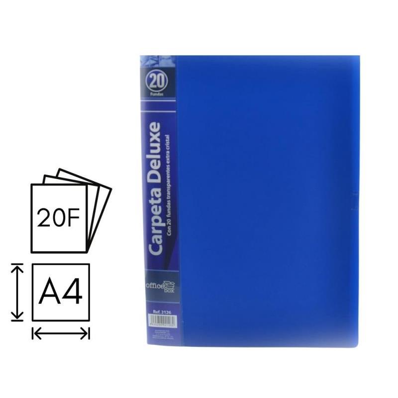 Material: Fabricada en polipropileno, un material ligero, duradero y resistente al desgaste, ideal para el uso diario. Capacidad: Incluye 20 fundas transparentes, permitiendo almacenar hasta 40 hojas si utilizas ambos lados de cada funda. Tamaño: Compatible con documentos DIN A4, el estándar más común en Europa para documentos de oficina. Personalización: Lomo y portada personalizables para una organización eficiente y etiquetado adecuado según tus necesidades. Color: Elegante color azul que ofrece un aspecto profesional y permite la codificación por colores de tus proyectos. Uso: Ideal para oficinas, colegios y presentaciones que requieren una visualización rápida y formal de documentos.