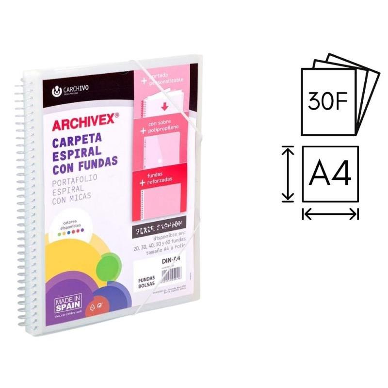 CARPETA CARCHIVO ESPIRAL CANGURO 30 FUNDAS P.P. A4 + SOBRE + GOMA DE CIERRE TRANSPARENTE (53033002)