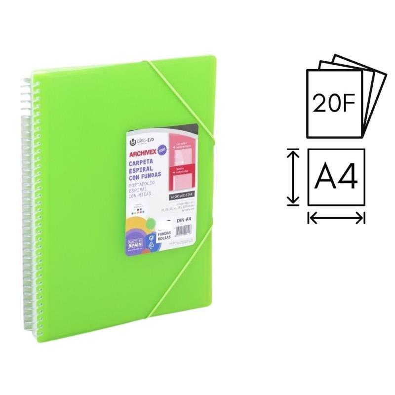 CARPETA CARCHIVO ESPIRAL 20 FUNDAS P.P. A4 + SOBRE + GOMA DE CIERRE VERDE (53022054)