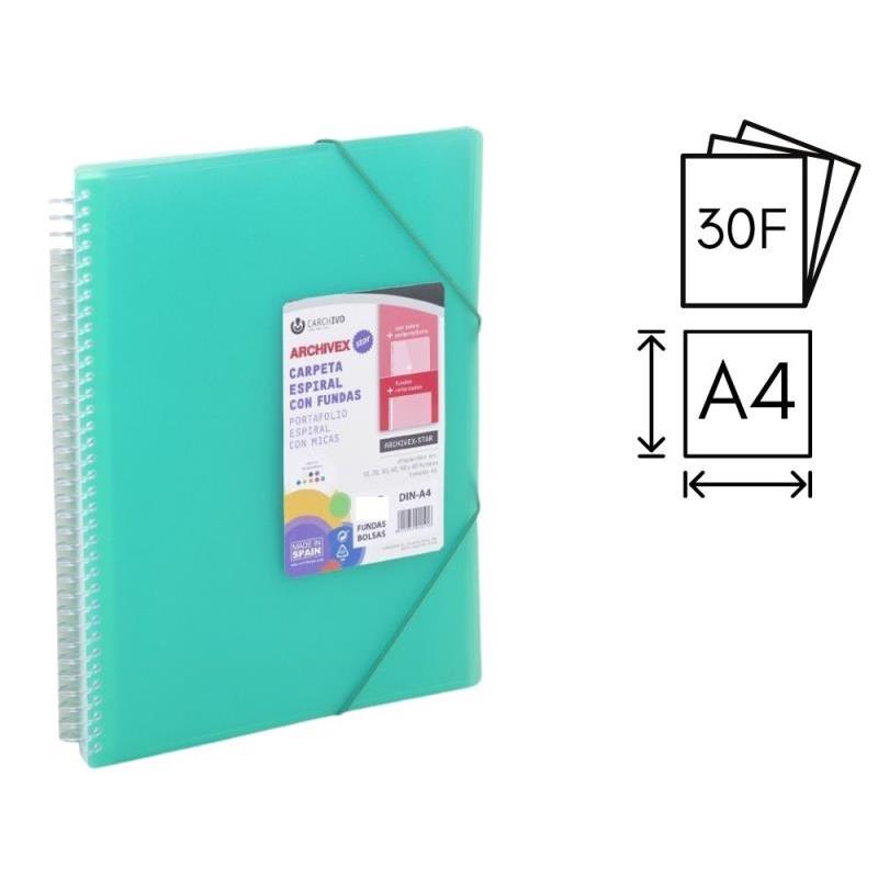 CARPETA CARCHIVO ESPIRAL 30 FUNDAS P.P. A4 + SOBRE + GOMA DE CIERRE VERDE CLARO (53023051)