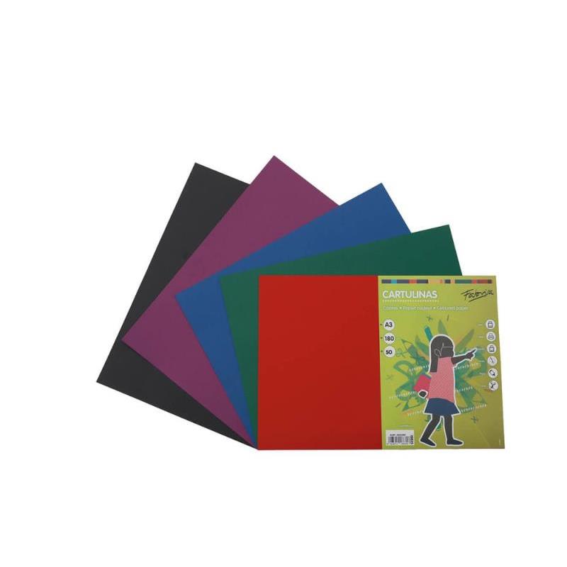 Cartulina surtido oscuro de 180 g/m² tamaño A3. Cada pack contiene 50 cartulinas de 5 colores: rojo oscuro, verde intenso, azul marino, morado y negro. Cartulinas tintadas en masa, ofreciendo así unos colores más homogéneos y nítidos. Ideal para su uso escolar, todo tipo de manualidades, cubiertas, separadores, impresión de documento, etc. Disponible en una amplia gama de colores.