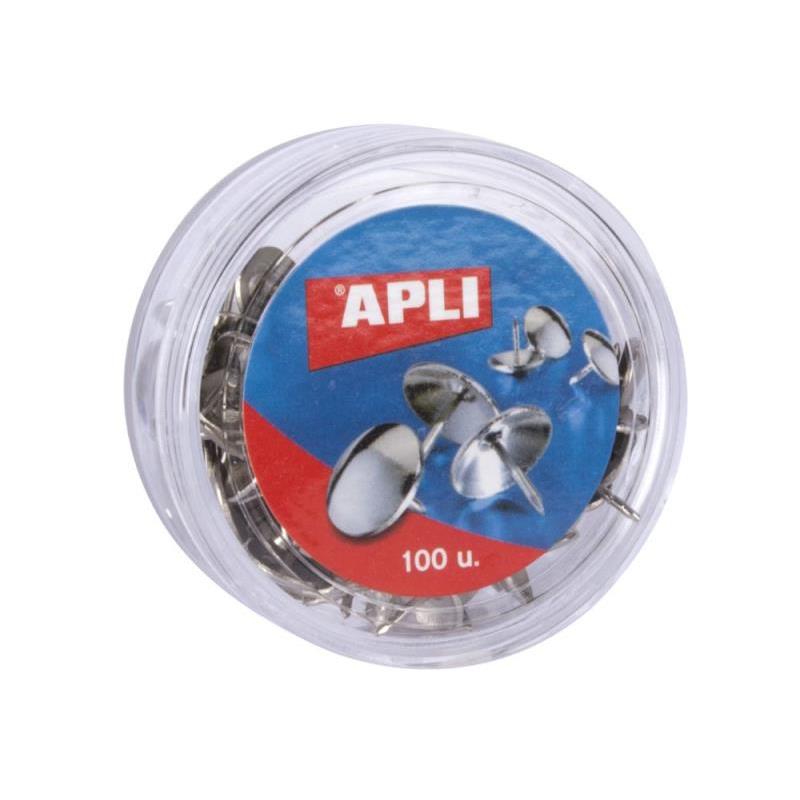 Chinchetas niqueladas de diámetro Ø 10 mm. Cabeza redondeada y puntas afiladas para facilitar su inserción. Cada caja contiene 100 chinchetas. Un producto imprescindible para tener siempre en casa y la oficina, ideal para sujetar papeles o fotos en corcho, colgar imágenes o posters en paredes, aplicar en tapicerías y madera, etc.