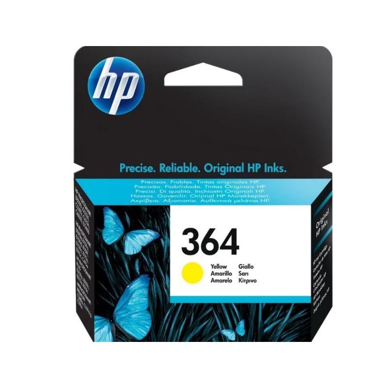 Cartucho de tinta amarilla original HP 364 (CB320EE). Ofrece colores vibrantes de calidad fotográfica y una gran resistencia a la decoloración con un rendimiento de hasta 300 páginas.