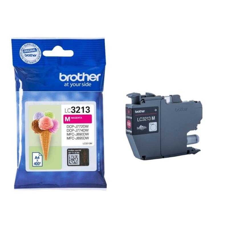 LC3213M: hasta 400 páginas según ISO/IEC 24711 - Cartucho de tinta magenta original Brother - Los cartuchos de tinta original Brother están rigurosamente testados para ofrecer una calidad de impresión óptima de la primera a la última página, ahorrando tiempo y dinero. - Protege la garantía de tu impresora con el cartucho de tinta original Brother LC3213M Compatibilidad: DCP-J572 DCP-J772 DCP-J774 MFC-J890 MFC-J895 Cantidad por paquete: 1 pieza(s) Rendimiento de impresión de página con tinta de color: 400 páginas Tipo: Original Colores de impresión: Magenta Marca compatible: Brother Tipo de suministro: Pack individual
