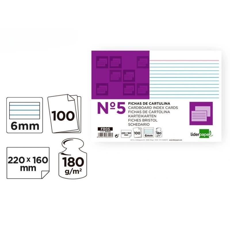 FICHA RAYADO HORIZONTAL N5 LIDERPAPEL 160X220 MM. (3522)