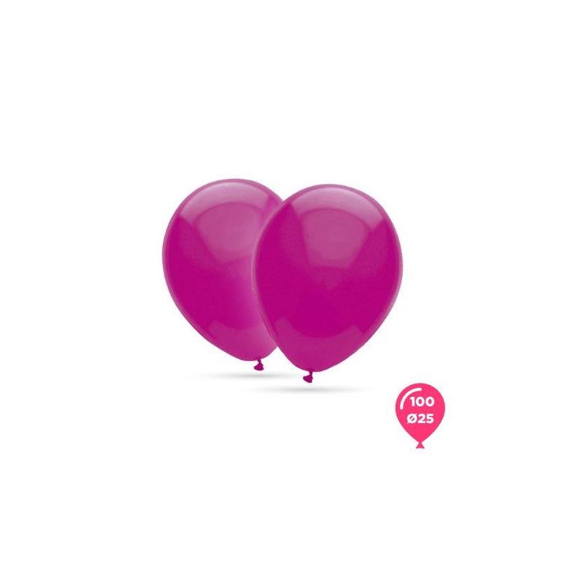 BOLSA 100 GLOBOS 25 CM FUCSIA 100% LATEX 10G (50059)
