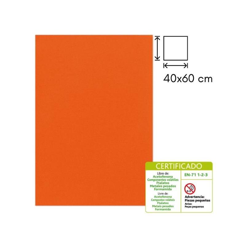 Dimensiones: Tamaño: 40 x 60 cm. Perfecto para una amplia variedad de aplicaciones, permite tanto cortes grandes como pequeños. Grosor: Espesor: 2 mm. Combina flexibilidad y rigidez, ideal para proyectos que requieren durabilidad sin ser demasiado gruesos para cortar o moldear. Peso: Densidad: 60 g/m². Liviano, facilita su manipulación y transporte. Color: Naranja: Un color sólido y versátil que puede ser decorado o utilizado como contraste en trabajos multicolores.