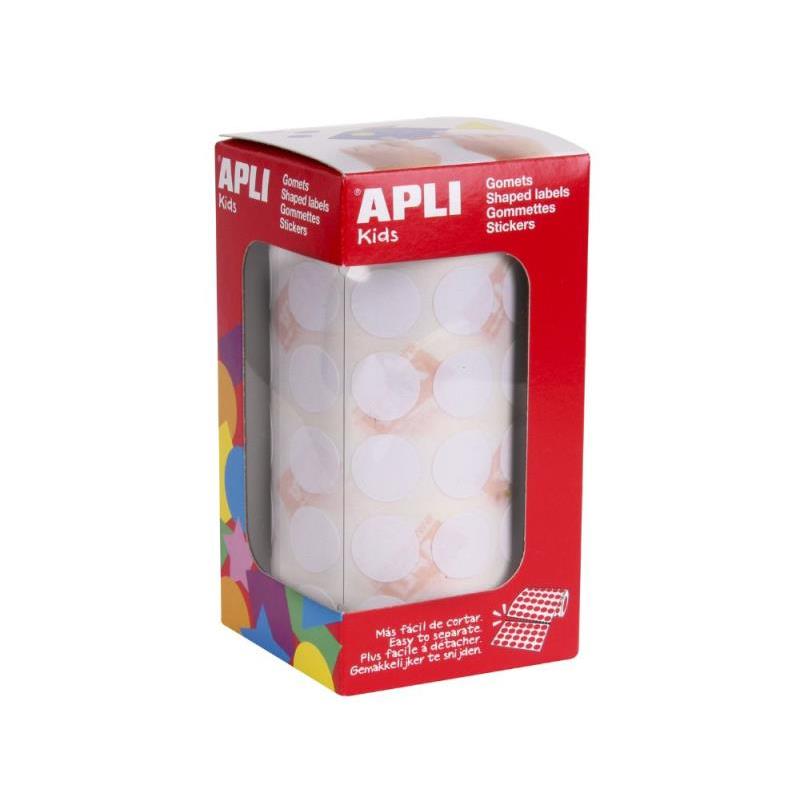 Rollo de gomets redondos de tamaño Ø 15 mm en color blanco con adhesivo permanente. Cada rollo contiene 59 hojas pretroqueladas para una fácil separación, un total de 2.832 gomets por rollo. El formato perfecto para usar en escuelas, guarderías, talleres infantiles o cualquier otro colectivo que trate con niños.
