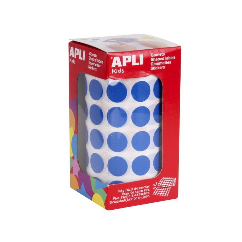 Rollo de gomets redondos de tamaño Ø 15 mm en color azul con adhesivo permanente. Cada rollo contiene 59 hojas pretroqueladas para una fácil separación, un total de 2.832 gomets por rollo. El formato perfecto para usar en escuelas, guarderías, talleres infantiles o cualquier otro colectivo que trate con niños.