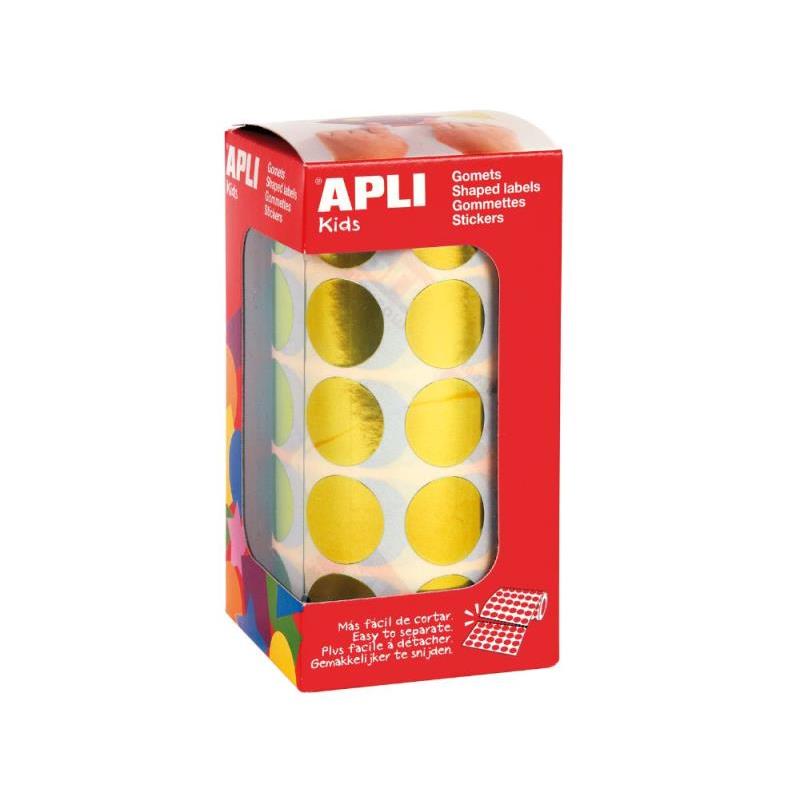 Rollo de gomets redondos de tamaño Ø 20 mm en color amarillo metalizado con adhesivo permanente. Cada rollo contiene 59 hojas pretroqueladas para una fácil separación, un total de 1.770 gomets por rollo. El formato perfecto para usar en escuelas, guarderías, talleres infantiles o cualquier otro colectivo que trate con niños.