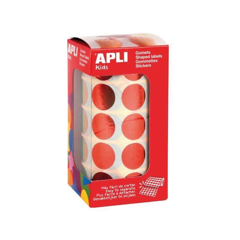Rollo de gomets redondos de tamaño Ø 20 mm en color rojo metalizado con adhesivo permanente. Cada rollo contiene 59 hojas pretroqueladas para una fácil separación, un total de 1.770 gomets por rollo. El formato perfecto para usar en escuelas, guarderías, talleres infantiles o cualquier otro colectivo que trate con niños.