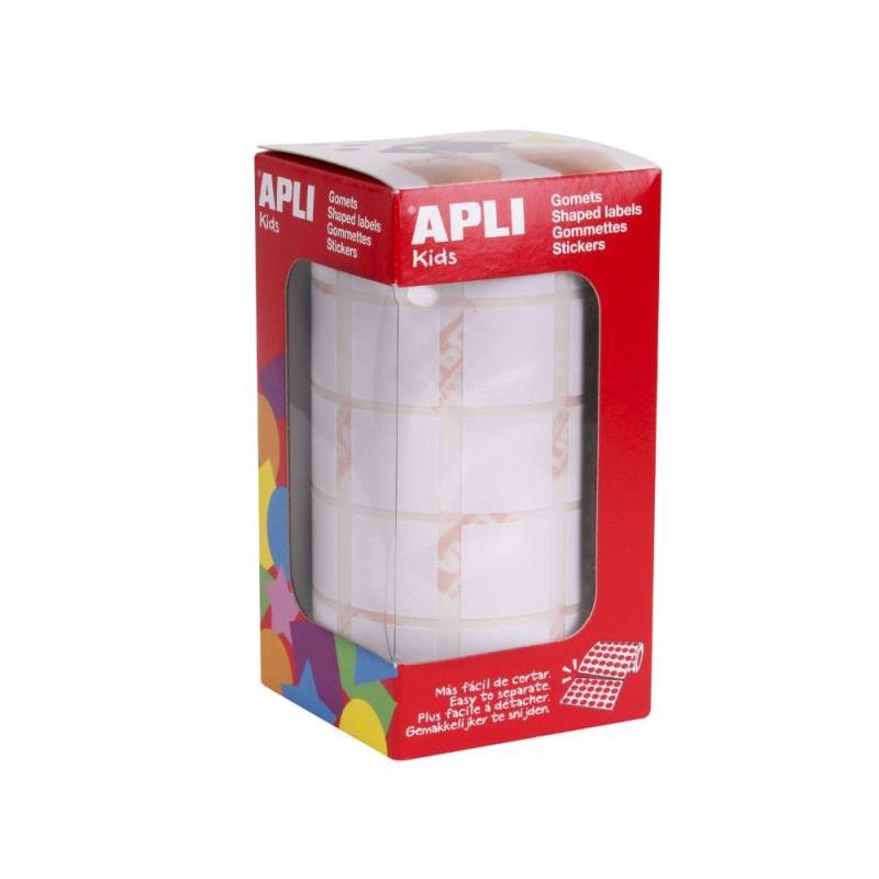 Rollo de gomets cuadrados de tamaño 20 x 20 mm en color balnco con adhesivo permanente. Cada rollo contiene 59 hojas pretroqueladas para una fácil separación, un total de 1.770 gomets por rollo.