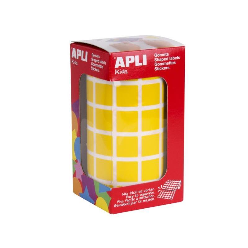 Rollo de gomets cuadrados de tamaño 15 x 15 mm en color amarillo con adhesivo permanente. Cada rollo contiene 59 hojas pretroqueladas para una fácil separación, un total de 2.832 gomets por rollo. El formato perfecto para usar en escuelas, guarderías, talleres infantiles o cualquier otro colectivo que trate con niños.