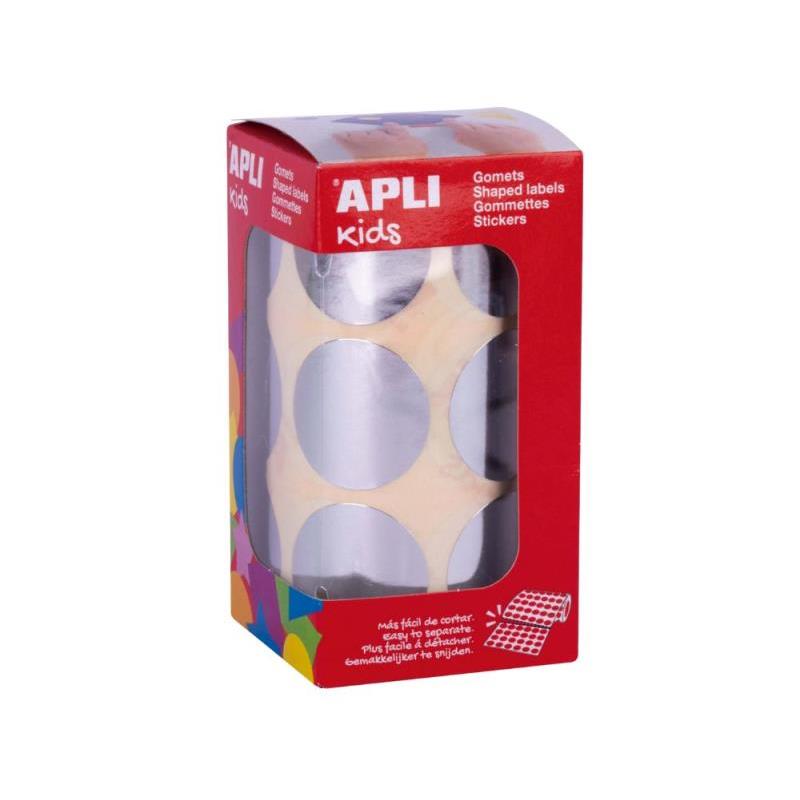 Rollo de gomets redondos de Ø33 mm en color plata metalizado con adhesivo permanente. Cada rollo contiene 59 hojas pretroqueladas para una fácil separación, un total de 708 gomets por rollo. El formato perfecto para usar en escuelas, guarderías, talleres infantiles o cualquier otro colectivo que trate con niños.