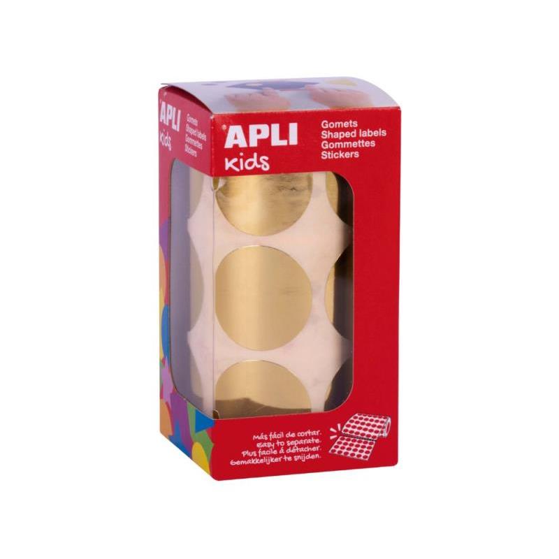 Rollo de gomets redondos de Ø33 mm en color oro metalizado con adhesivo permanente. Cada rollo contiene 59 hojas pretroqueladas para una fácil separación, un total de 708 gomets por rollo. El formato perfecto para usar en escuelas, guarderías, talleres infantiles o cualquier otro colectivo que trate con niños.