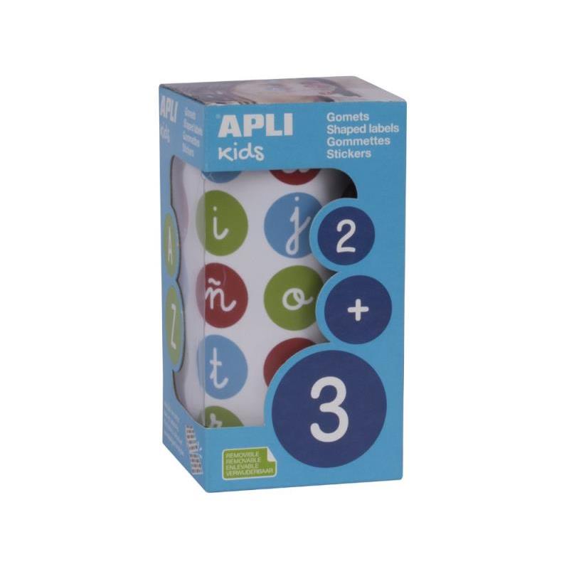 Rollo de gomets redondos ABC de tamaño Ø 20 mm con adhesivo removible. Gomets con las letras del abecedario en minúsculas (incluye signo exclamación, singo interrogación y punto). Cada rollo contiene 30 hojas pretroqueladas para una fácil separación, un total de 900 gomets por rollo. 3 colores surtidos en cada hoja: rojo, verde y azul. El rollo incluye diferentes patrones de color, por lo que la misma letra está disponible en varios colores.