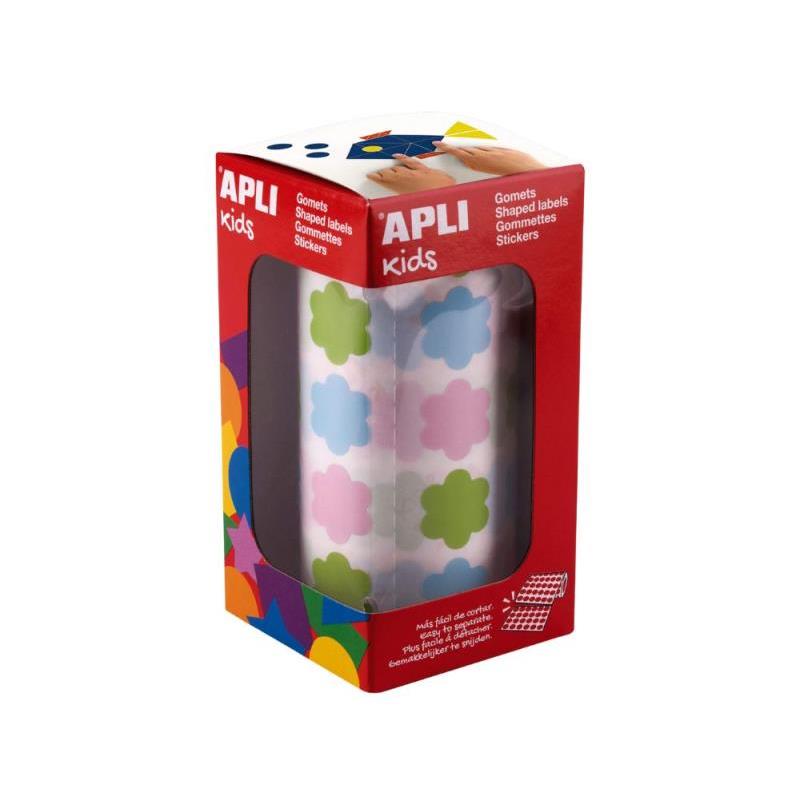 Rollo de gomets en forma de flores de tamaño 20 x 18 mm en colores surtidos: rosa pastel, azul pastel y verde pastel con adhesivo permanente. Cada rollo contiene 30 hojas pretroqueladas para una fácil separación, un total de 900 gomets por rollo.