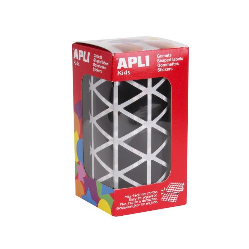 Rollo de gomets triangulares de tamaño 20 x 20 x 20 mm en color negro con adhesivo permanente. Cada rollo contiene 59 hojas pretroqueladas para una fácil separación, un total de 2.832 gomets por rollo. El formato perfecto para usar en escuelas, guarderías, talleres infantiles o cualquier otro colectivo que trate con niños.