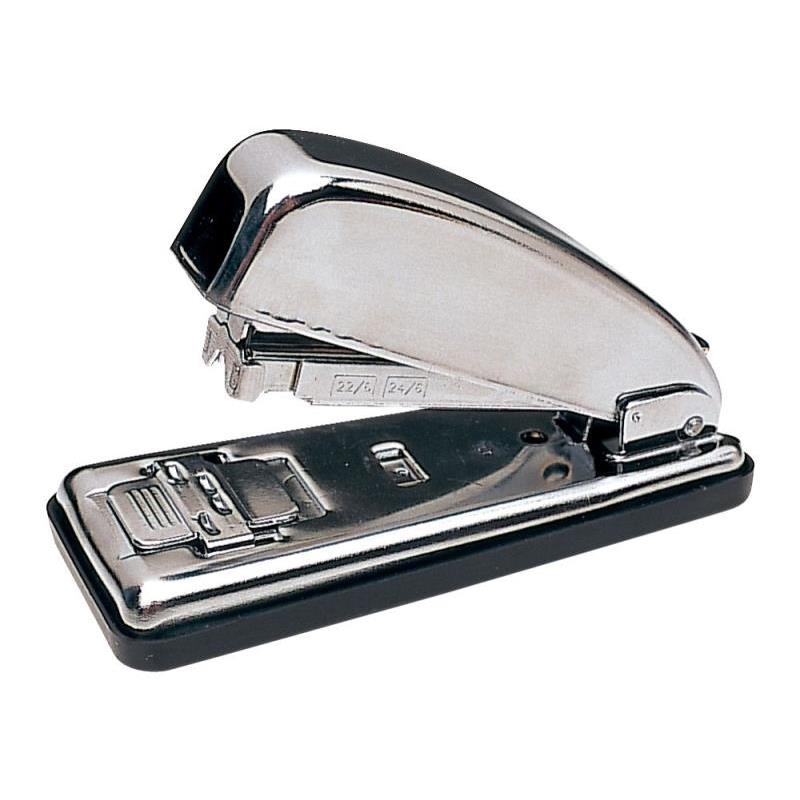 Capacidad de Grapado: Puede grapar hasta un máximo de 30 hojas de papel de 80 g/m². Material y Acabado: Fabricada con materiales metálicos de alta resistencia y cuenta con un acabado cromado que no solo le da un aspecto elegante, sino que también asegura una mayor durabilidad y resistencia a la corrosión. Carga de Grapas: Utiliza grapas del tamaño 24/6 y 26/6. La capacidad de carga de grapas es alta, facilitando un uso prolongado sin necesidad de recargar frecuentemente. Diseño Ergonómico: Optimizado para un uso cómodo y eficiente, con una empuñadura que facilita el agarre y reduce la fatiga durante su utilización. Mecanismo de Grapado: Posee un sistema de grapado de impacto directo que asegura un grapado eficiente y uniforme, reduciendo la posibilidad de atascos. Base Antideslizante: Incorpora una base antideslizante que proporciona estabilidad durante el uso y protege las superficies de trabajo. Peso y Dimensiones: Ligera y compacta, ideal para ser transportada fácilmente o para su uso en escritorios con espacio limitado.