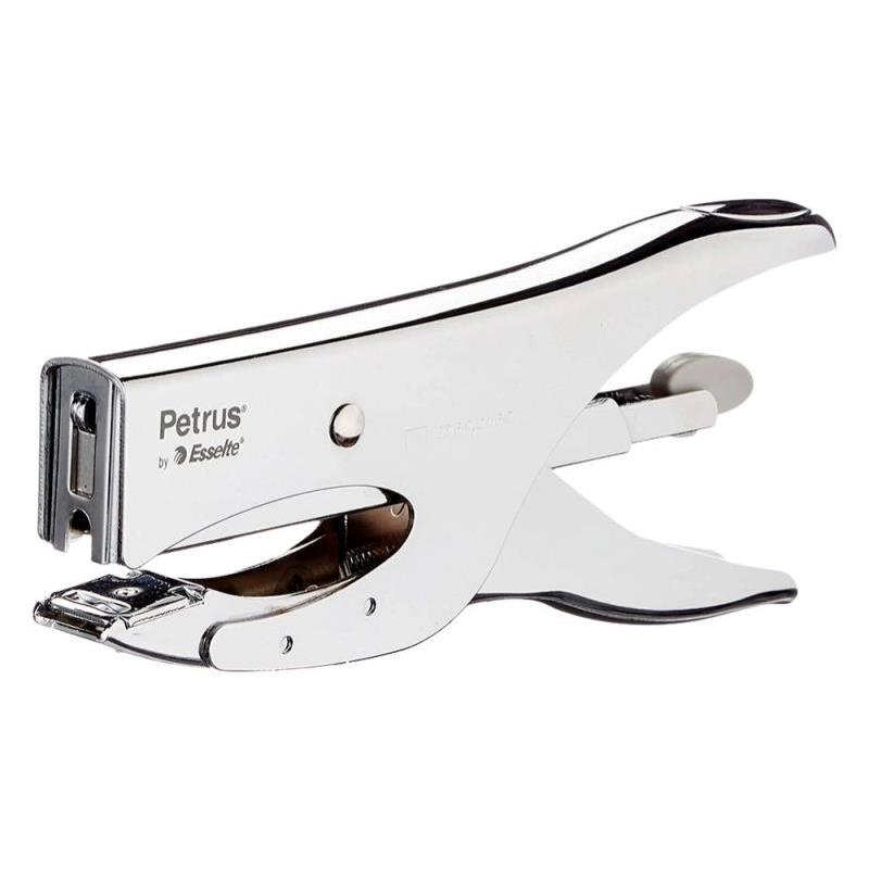La grapadora de tenaza Petrus 222, fabricada en metal cromado, es una elección excepcional para quienes buscan una herramienta de oficina fiable y eficiente. Con su capacidad para grapar hasta 40 hojas a la vez y su diseño ergonómico, esta grapadora es ideal tanto para oficinas como para tiendas que manejan un gran volumen de documentos diariamente.