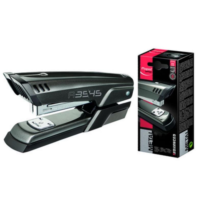 Grapadora de metal con mecanismo antibloqueo de grapas y apertura de 180º, lo que facilita la carga de grapas 26/6 (grapa 25 hojas) o 24/6 (grapa 20 hojas). Un producto técnico y de calidad con el que puede graparen cerrado, clavado o en abierto.