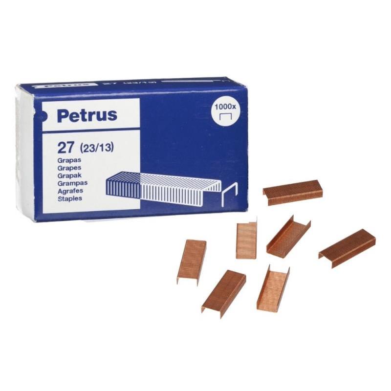 Descubre la eficiencia y resistencia de las grapas Petrus N 27 (23/13), diseñadas especialmente para satisfacer las necesidades de grapado en entornos industriales y de oficina. Con un acabado cobrado que garantiza resistencia a la corrosión y un deslizamiento suave, estas grapas son la elección ideal para aquellos que buscan durabilidad y profesionalismo en cada proyecto.