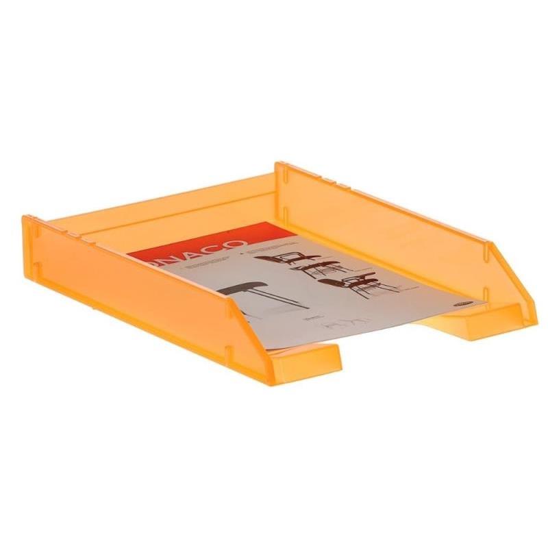 Optimiza tu espacio de trabajo con esta bandeja de sobremesa en color naranja translúcido, diseñada no solo para organizar tus documentos, sino también para agregar un toque moderno y vibrante a tu escritorio. Su diseño apilable y funcionalidad hacen que sea un accesorio imprescindible en cualquier entorno profesional o personal.
