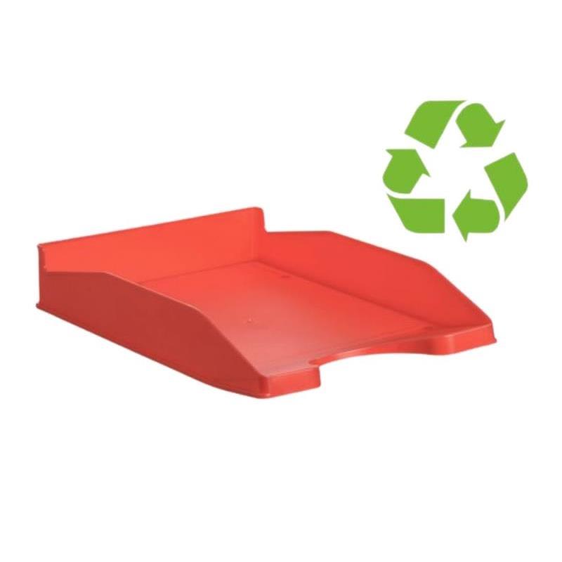 Material sostenible: Fabricada en poliestireno reciclado, contribuyendo a la reducción del impacto ambiental. Diseño vibrante: Su color rojo añade un toque de dinamismo a cualquier entorno de trabajo, además de ser apilable para maximizar el espacio. Compatibilidad: Adecuada para documentos de tamaño DIN A4 y folio, facilitando una organización versátil. Estructura y resistencia: Fondo liso y dimensiones de 255 x 345 x 60 mm, garantizando calidad y durabilidad. Practicidad: Permite una organización eficiente y accesible de documentos, mejorando la productividad diaria.
