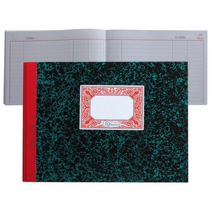 Formato y Diseño: Tipo: Libro contable de mayor. Tamaño: Cuarto apaisado (210 x 150 mm), ideal para una vista panorámica de las transacciones. Encuadernación: Cartón forrado de papel jaspeado con lomo de tela engomado para mayor resistencia. Hojas: 100 hojas foliadas, perfectas para la anotación sistemática de operaciones financieras. Usos: Contabilidad: Esencial para el registro ordenado de transacciones económicas. Organización: Facilita el control y revisión de cuentas, esencial para auditorías. Calidad: Materiales de alta calidad que aseguran la longevidad de los registros. Papel extra opaco de 70 g/m² que evita el traspaso de tinta, ideal para bolígrafos o plumas. Diseño Interior: Páginas preimpresas con columnas y encabezados que simplifican la documentación contable. Espacios dedicados para la descripción de transacciones, fechas, números de referencia, y cantidades de debe y haber.