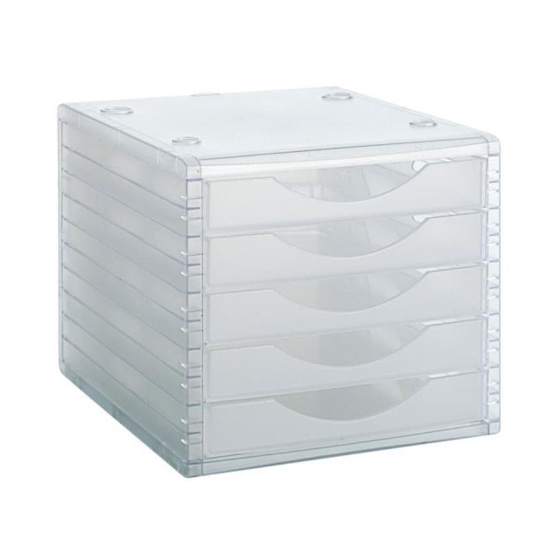 Diseño Apilable: Ideal para oficinas con espacio limitado, este fichero se puede apilar fácilmente, manteniendo la estabilidad y el orden. Cinco Cajones: Ofrece amplio espacio para organizar documentos en formatos DIN A4, folio y subcarpetas, clasificándolos por categoría o prioridad. Dimensiones Compactas: Con medidas de 260x270x340 mm, es lo suficientemente compacto para cualquier escritorio sin comprometer su capacidad de almacenamiento. Acabado Translúcido: El acabado Translúcido permite identificar rápidamente el contenido de cada cajón, mejorando la eficiencia en la búsqueda de documentos. Calidad de Fabricante: Producido por Archivo 2000, una marca reconocida por su durabilidad y diseño funcional en soluciones de almacenamiento.