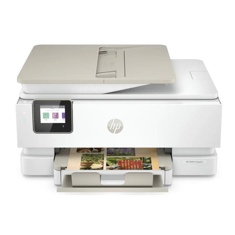 La HP Envy Inspire 7920e es una impresora multifunción 3 en 1 diseñada para el hogar moderno y el teletrabajo. Destaca por su rapidez de 15 ppm, un alimentador automático de documentos (ADF) de 35 hojas y una bandeja fotográfica dedicada, permitiendo imprimir fotos de gran calidad y documentos profesionales con total facilidad.