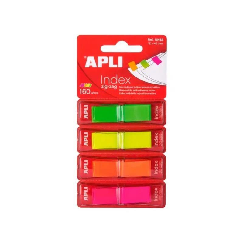 INDICES ADHESIVOS FILM ZIG-ZAG APLI 45 X 12 MM. 4 DISPENSADORES DE 40 INDICES DE 4 COLORES FLUORESCE