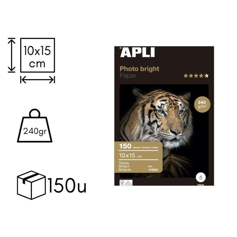 PAPEL FOTOGRAFICO APLI BRIGHT PRO. 240 GRS. 10 X 15 CM. 150 HOJAS (11504)