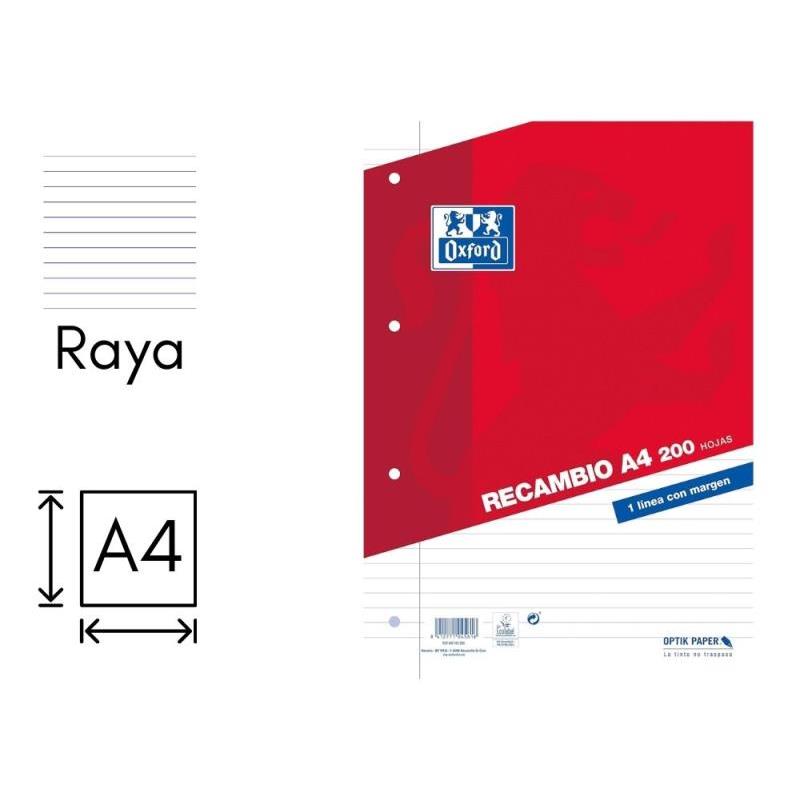 RECAMBIO OXFORD A4 4 ANILLA 1 LINEA CON MARGEN 100H 90G OXFORD (400173743) (430210)