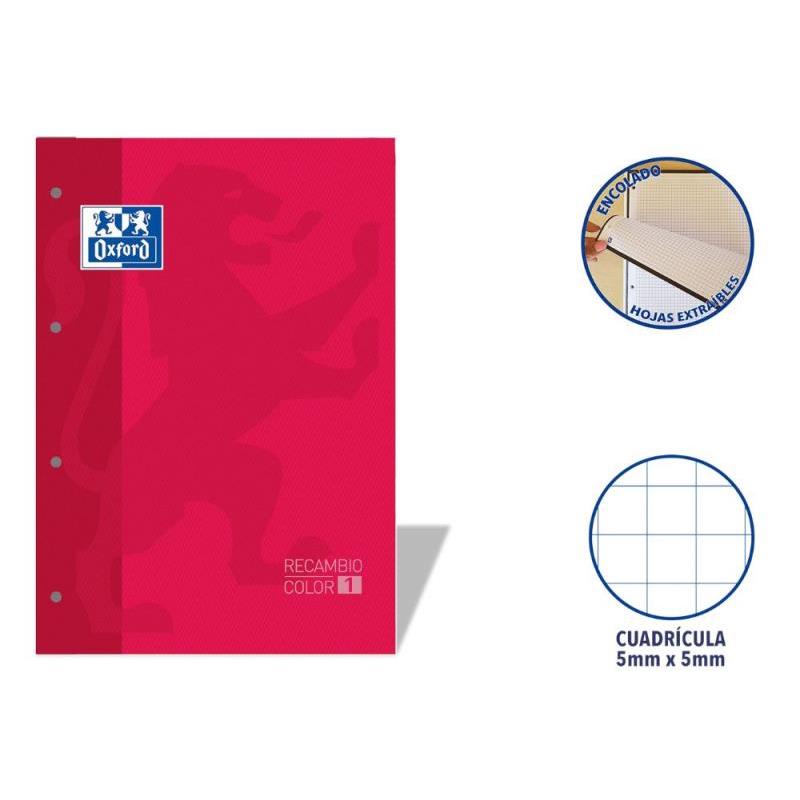 RECAMBIO OXFORD EUROPEANBOOK ENCOLADO A4 80 H. 90 GRS. CDLA. 5 CON RECUADRO MELOCOTÓN (400121584)