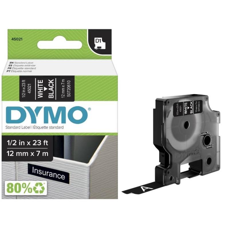 CINTA DYMO D1 12 MM. X 7 M FONDO NEGRO LETRA BLANCA (S0720610) (45021)